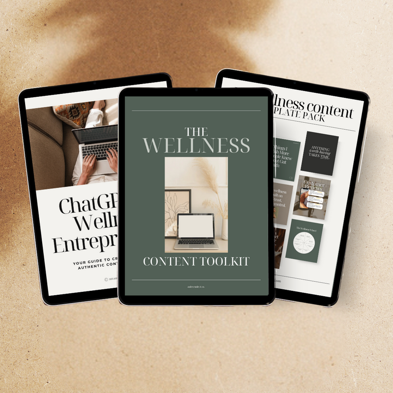Want to streamline everything? This all-in-one bundle includes the Wellness Content Toolkit, Canva Template Pack, and ChatGPT Guide so you can plan, write, and design your content with clarity.